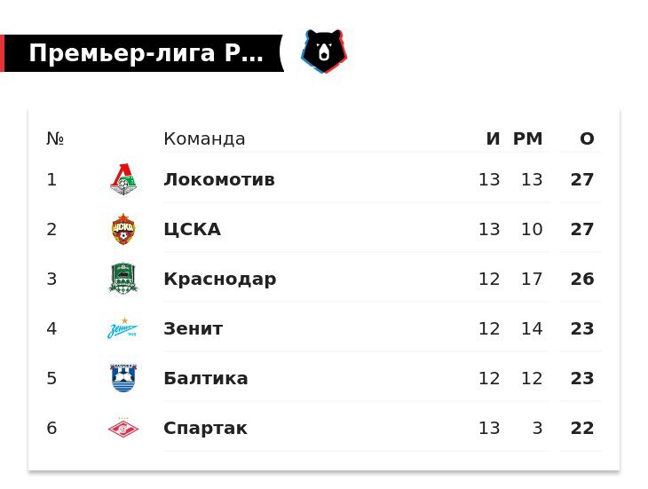 «Зенит» и «Балтика», также пока сыгравшие по 12 матчей, идут четвертыми и пятыми с 23 очками.