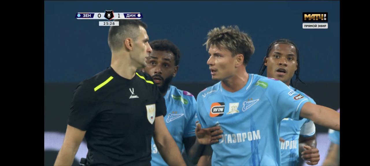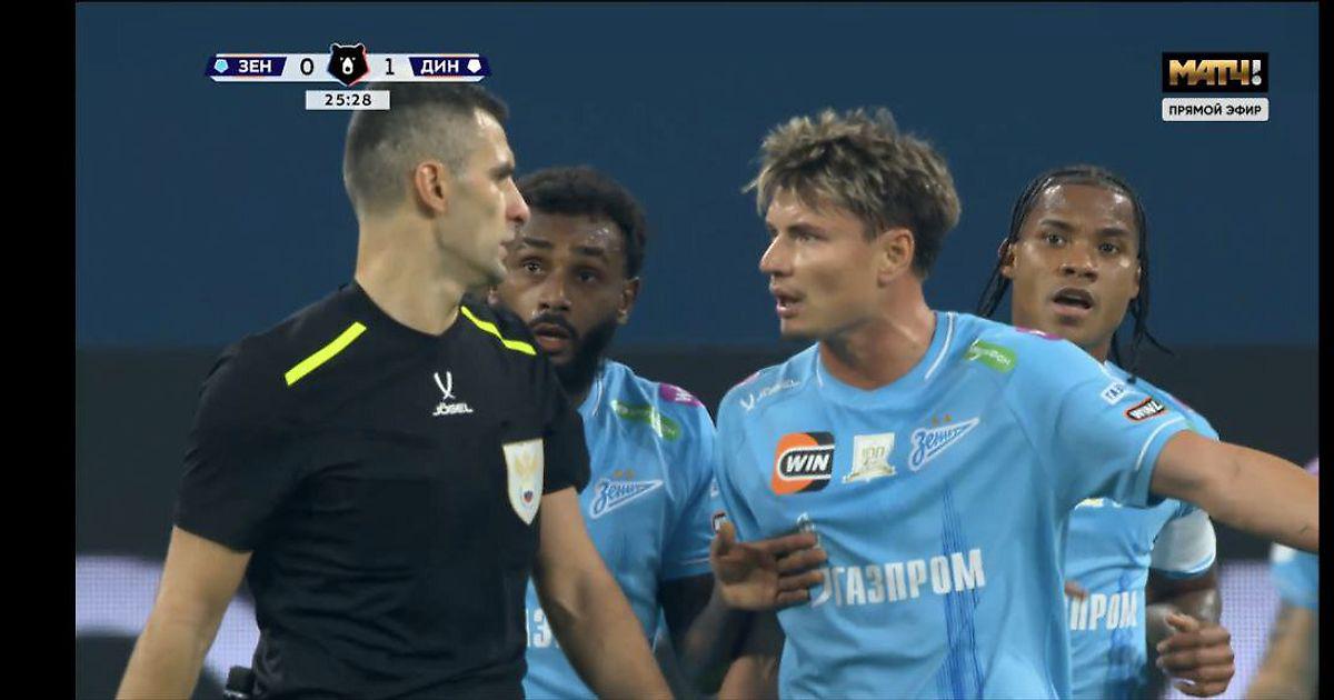Игроки «Зенита» высказывали претензии Сухому за то, что он не зафиксировал фол на Мостовом в начале голевой атаки «Динамо». ВАР подтвердил решение судьи