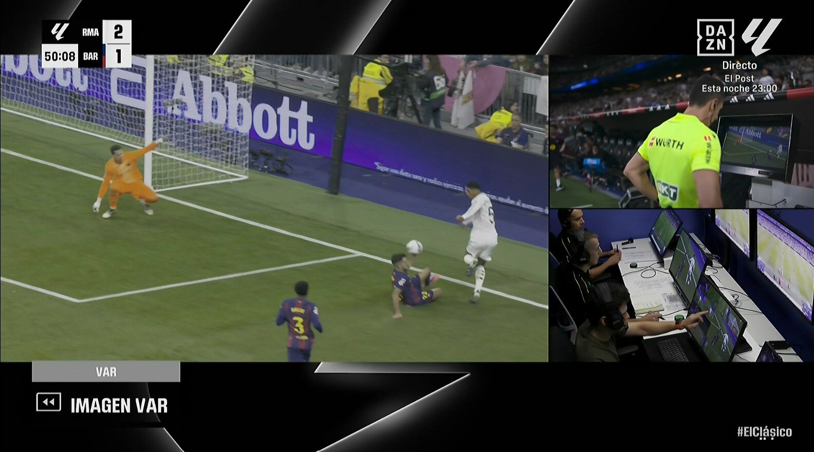 Шченсны отразил удар Мбаппе с пенальти. Сото Градо после ВАР назначил 11-метровый в пользу «Реала» в класико за попадание мяча в руку Гарсии