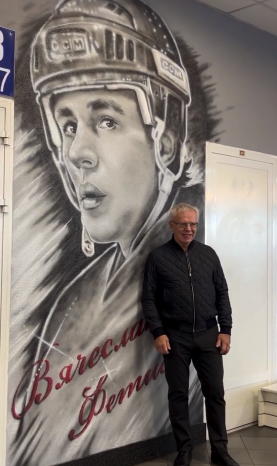 Фетисов участвовал в возложении цветов в Брестской крепости и расписался на своем портрете на стене в ледовом дворце школы ХК «Брест»