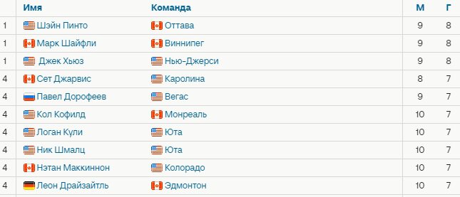 Джек Хьюз, Шайфли и Пинто лидируют в гонке снайперов НХЛ – у всех по 8 шайб в 9 играх