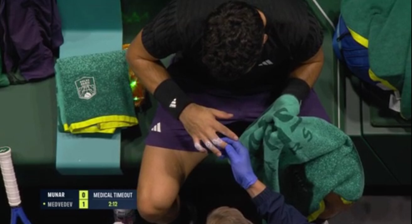 Муньяр содрал кожу на руке в первом гейме матча с Медведевым