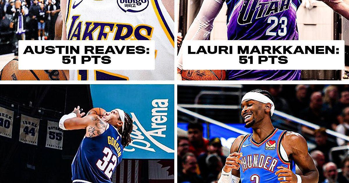 Планку в 50 очков взяли: Остин Ривз («Лейкерс»), Лаури Маркканен («Юта»), Аарон Гордон («Денвер») и Шэй Гилджес-Александер («Оклахома»).