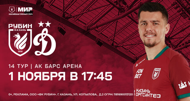 «Рубин» встретится с «Динамо». Казанцы, команде нужна ваша поддержка на «Ак Барс Арене»!