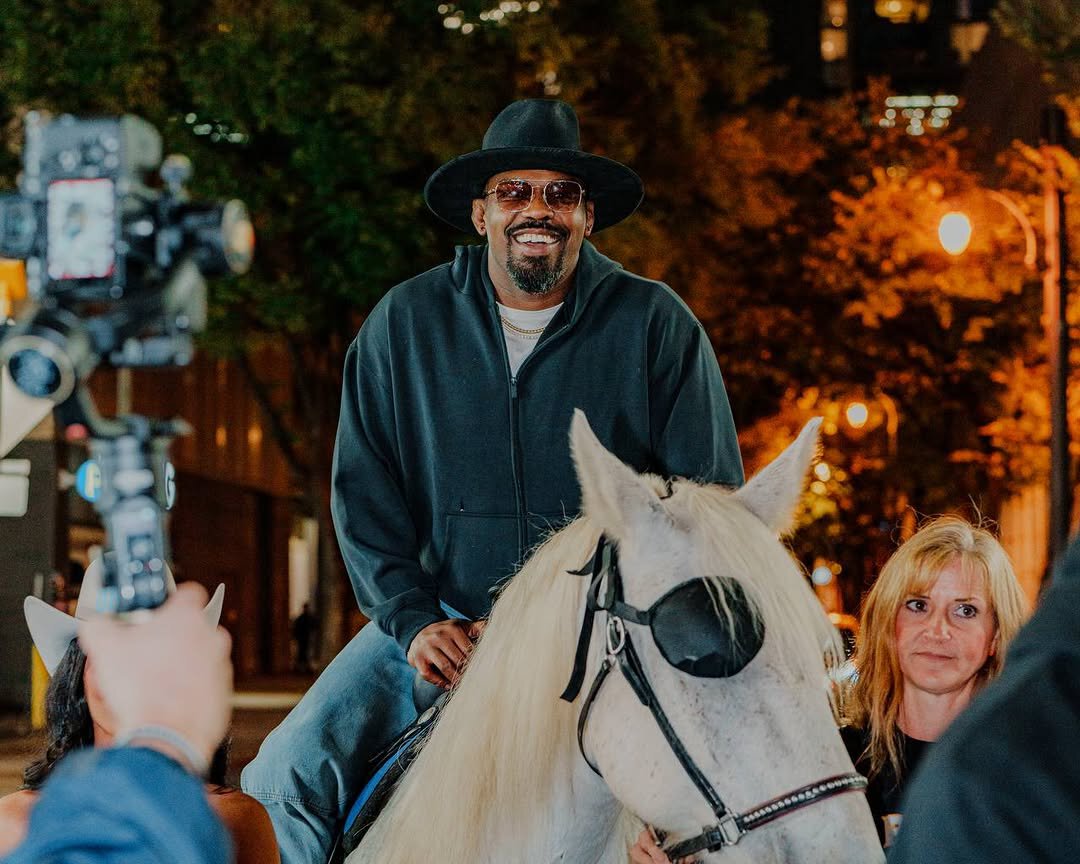 Джон Джонс приехал на взвешивание перед турниром DBX на коне с повязкой на глазу