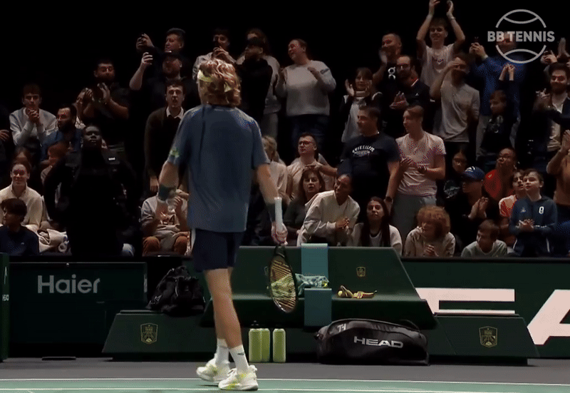 Андрей Рублев пнул сетку в матче с Беном Шелтоном на «Мастерсе» в Париже.