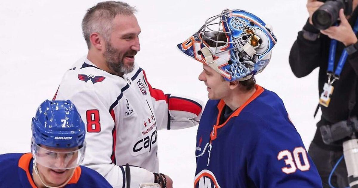 Сорокин поприветствовал старшего сына Овечкина после матча «Айлендерс» и «Вашингтона», отбив кулачок через стекло