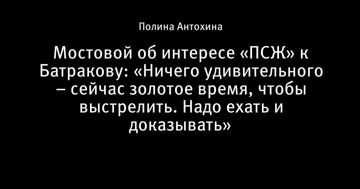 Мостовой об интересе «ПСЖ» к Батракову: «Ничего удивительного – сейчас золотое время, чтобы выстрелить. Надо ехать и доказывать»