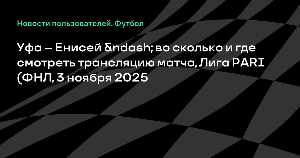 Уфа – Енисей – во сколько и где смотреть трансляцию матча, Лига PARI (ФНЛ, 3 ноября 2025