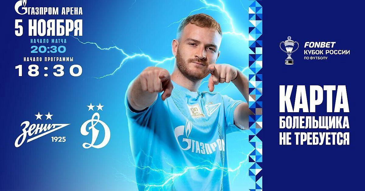 «Зенит» встретится с «Динамо». Петербуржцы, ждем всех на домашнем кубковом матче против бело-голубых!