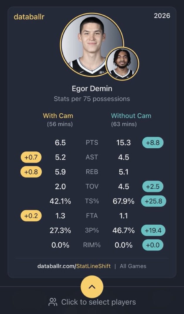 Егор Дёмин прибавляет в большинстве показателей, включая результативность и процент задействования, без Кэма Томаса на площадке