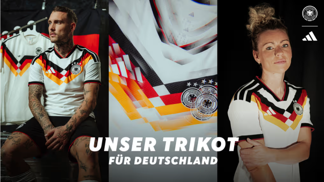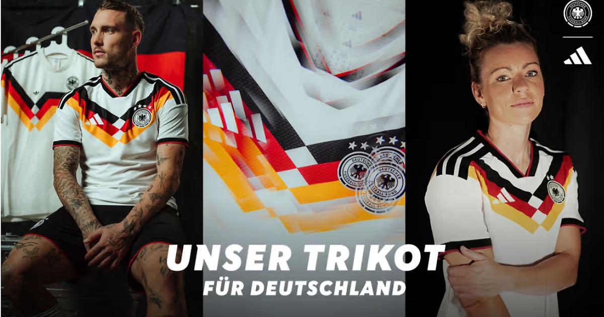 Форма представляет собой дань уважения величайшим успехам Германии и самым легендарным комплектам формы на чемпионатах мира ФИФА. Новая домашняя форма выполнена в традиционном белом цвете с ромбовидным узором в черно-красно-золотых тонах, вдохновленным культовым дизайном формы, завоевавшей кубок мира. Зигзагообразный узор напоминает форму 1994 года, когда США впервые принимали турнир. В сочетании с черными шортами и белыми гетрами, повторяющими ромбовидный узор, это создает современный образ, отдающий дань уважения корням и классическому облику сборной Германии», – говорится на сайте Немецкого футбольного союза.
