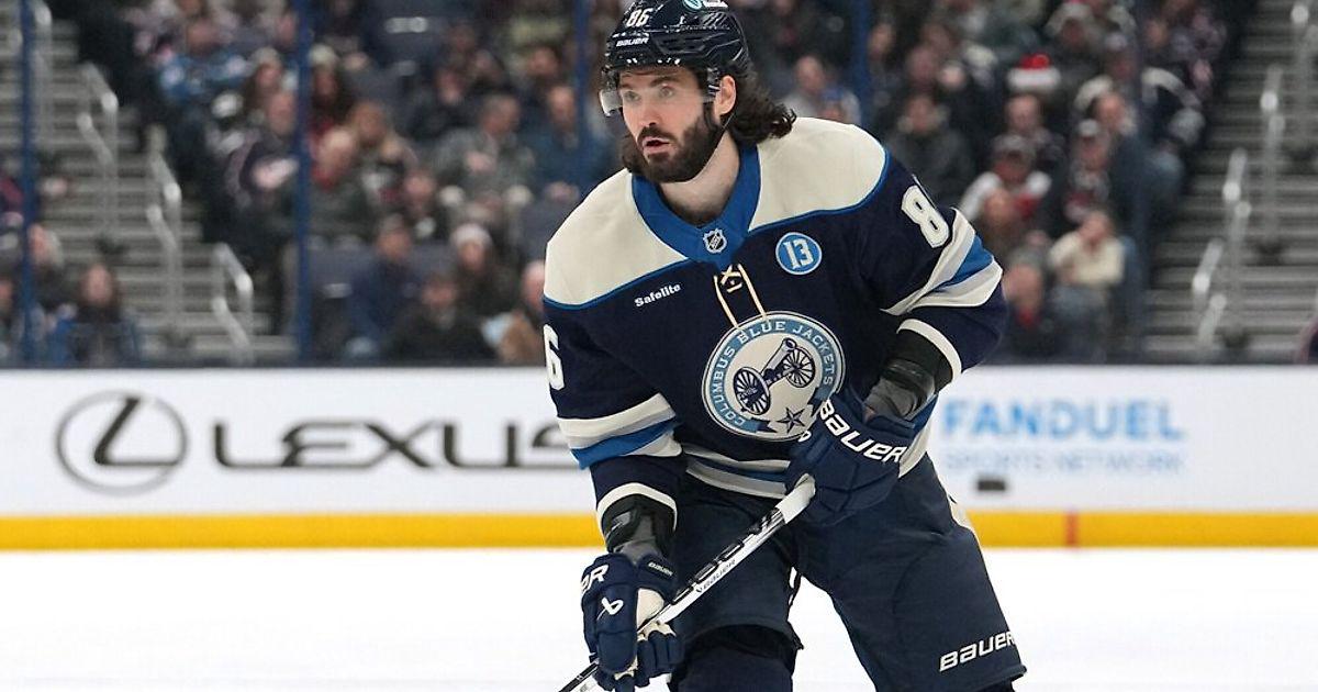 Нападающий «Коламбуса» Кирилл Марченко забросил шайбу в матче регулярного чемпионата НХЛ против «Калгари» (1:5).