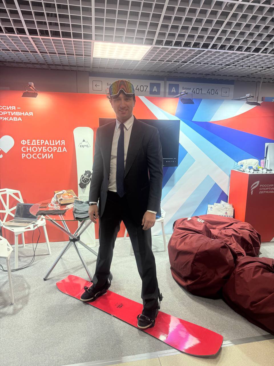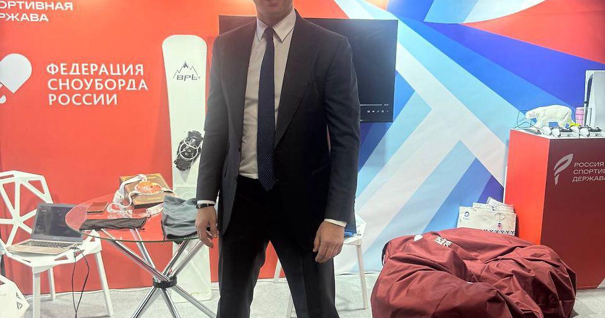 Вице-президенту Федерации хоккея России (ФХР) Роману Ротенбергу подарили красный сноуборд на форуме «Россия – спортивная держава».