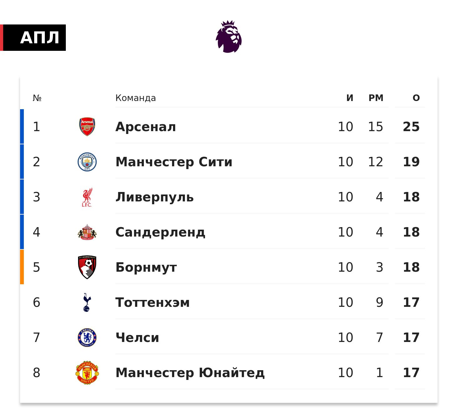 Главный тренер «Манчестер Сити» Пеп Гвардиола высказался о лидерстве «Арсенала» в турнирной таблице АПЛ. «Канониры» занимают 1-е место с 25 очками, «горожане» идут вторыми, набрав 19 баллов.