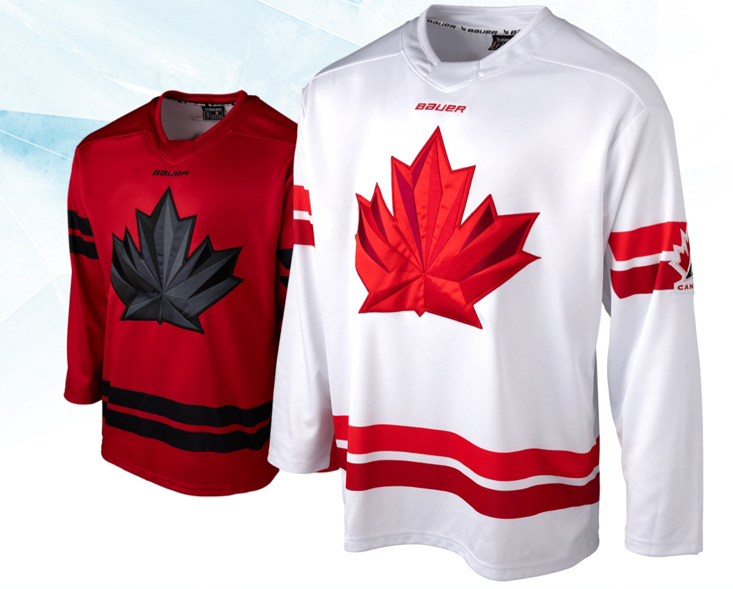 Канада представила два варианта формы: белый свитер с красным кленовым листом в центре, а также красные джерси с черным листом. Дизайн формы разработан компанией Nike, однако фанатские реплики будет делать Bauer.