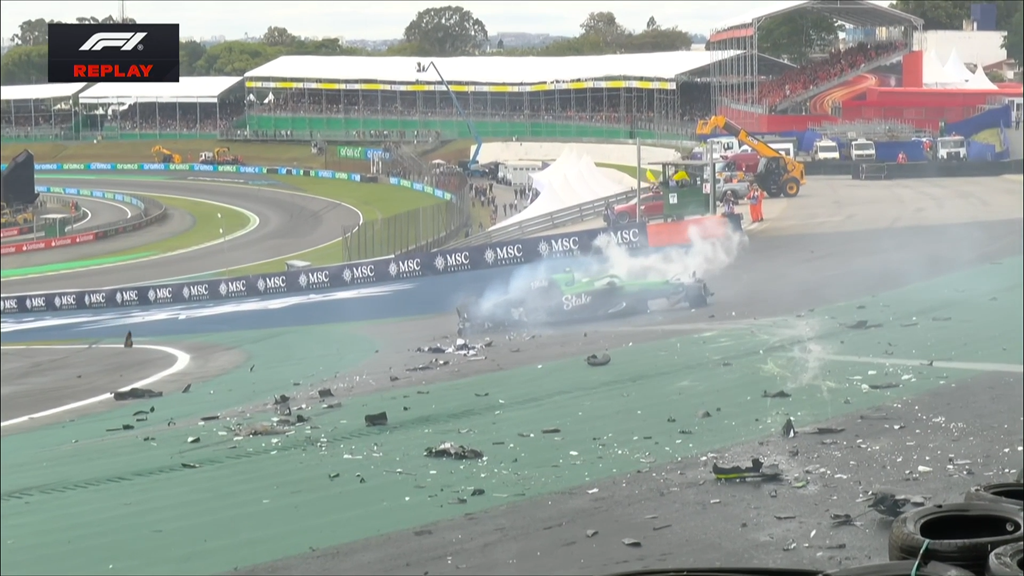Пилот «Заубера» Габриэл Бортолето разбил болид на последнем круге спринта перед Гран-при Сан-Паулу.