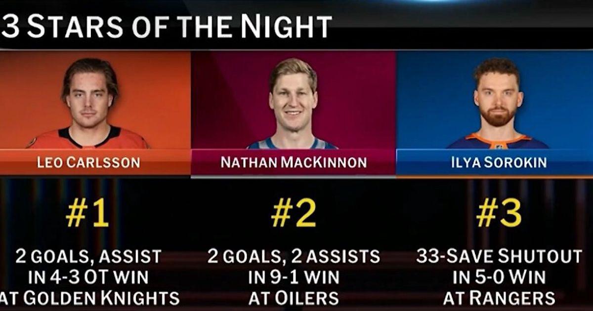 Лео Карлссон, Нэтан Маккиннон и Илья Сорокин – звезды дня в НХЛ.