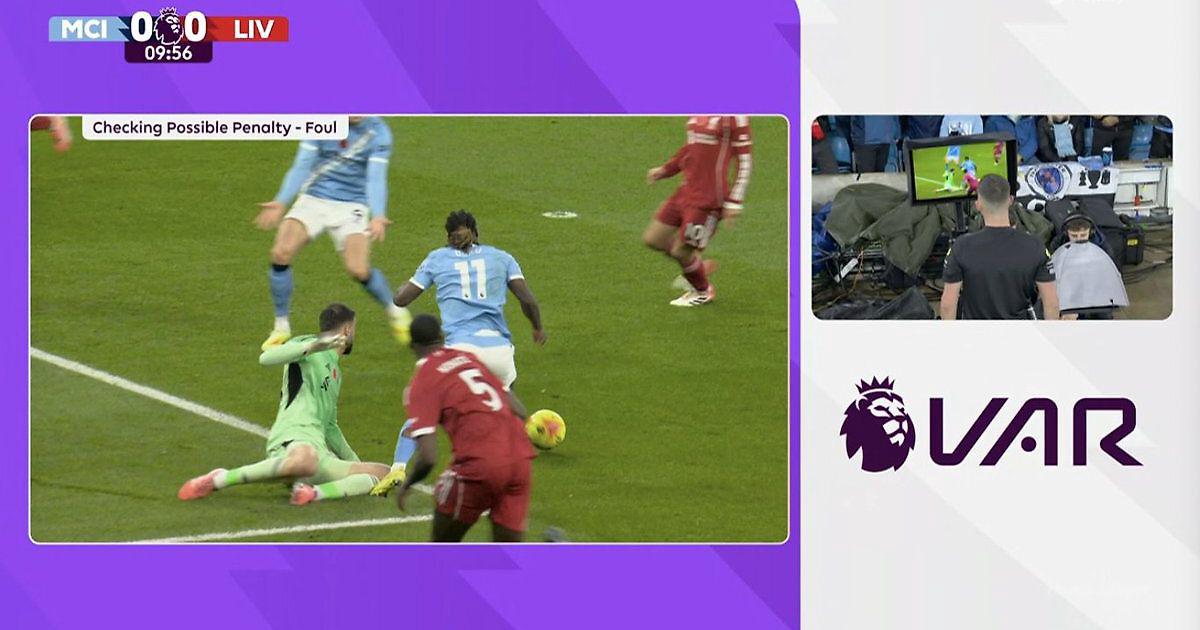 Мамардашвили сбил Доку в штрафной в игре с «Ман Сити» – судья с ВАР поставил пенальти. Холанд с точки не забил вратарю «Ливерпуля»