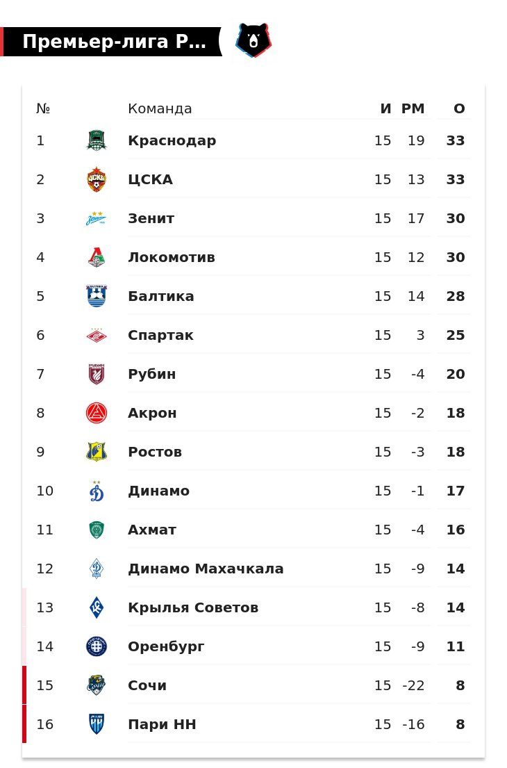 «Краснодар» выиграл 1-й круг РПЛ, у ЦСКА тоже 33 очка. «Зенит» и «Локо» отстают на 3 балла, «Балтика» – на 5, «Спартак» – на 8, «Динамо» – на 16