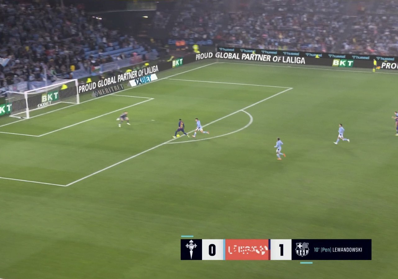 На 11-й минуте встречи, спустя минуту после гола Роберта Левандовского с пенальти, Маркус Рэшфорд выбегал к воротам «Сельты» один на один с вратарем, но Ионуц Раду отбил удар форварда «Барселоны».