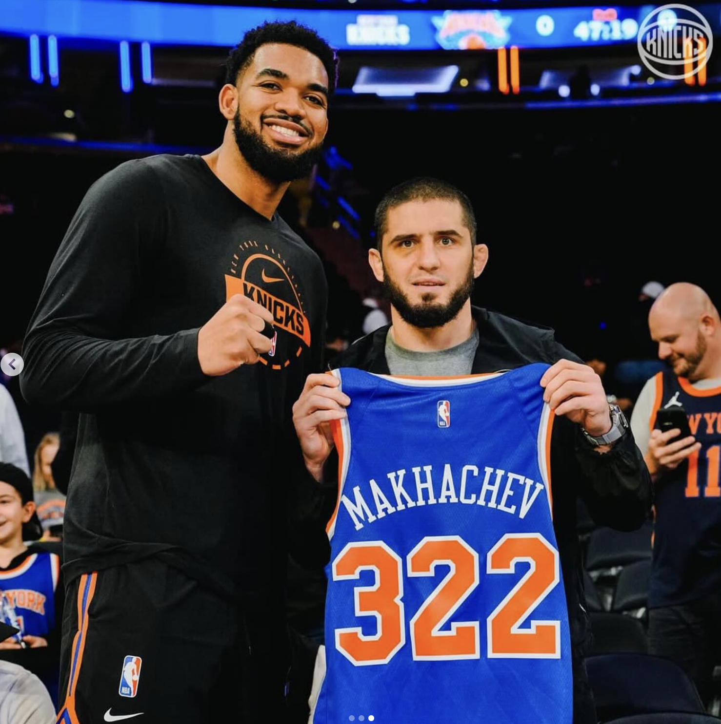 Ислам Махачев посетил игру «Никс» и получил именную футболку от Карла-Энтони Таунса