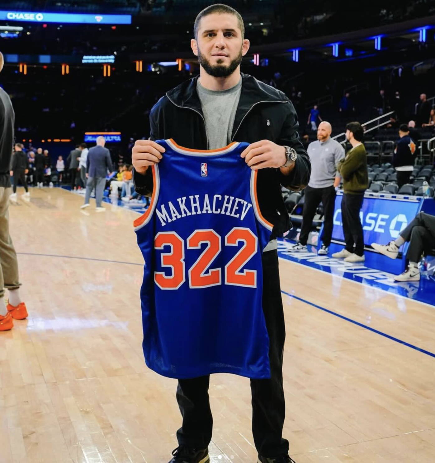 Бывший чемпион UFC в легком весе Ислам Махачев посетил матч регулярного чемпионата НБА между «Нью-Йорк Никс» и «Бруклин Нетс».