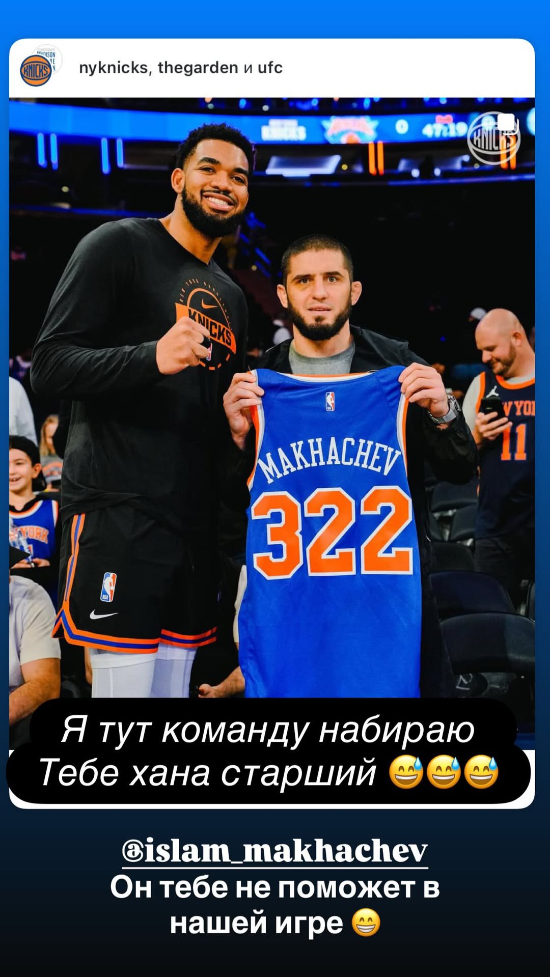 Ислам Махачев посетил игру «Никс» и получил именную футболку от Карла-Энтони Таунса