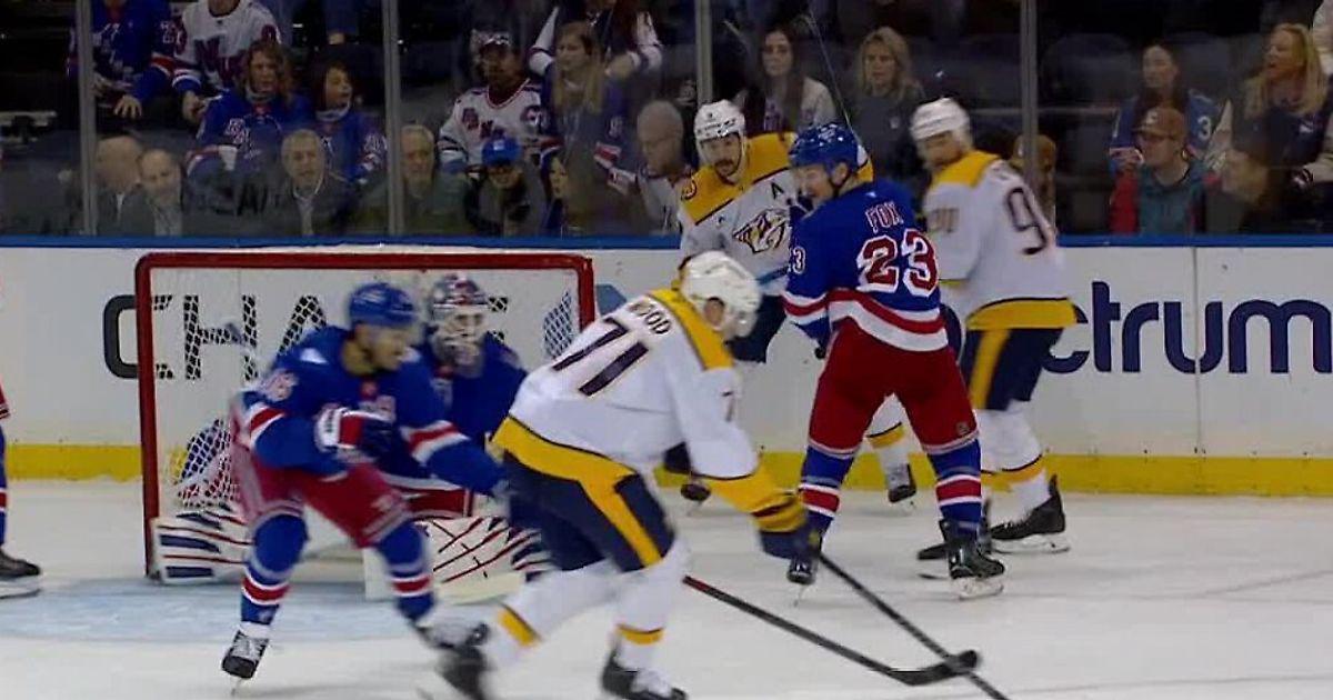 Форвард «Нэшвилла» Мэттью Вуд забросил все 3 шайбы своей команды в матче регулярного чемпионата НХЛ с «Рейнджерс» (3:6).