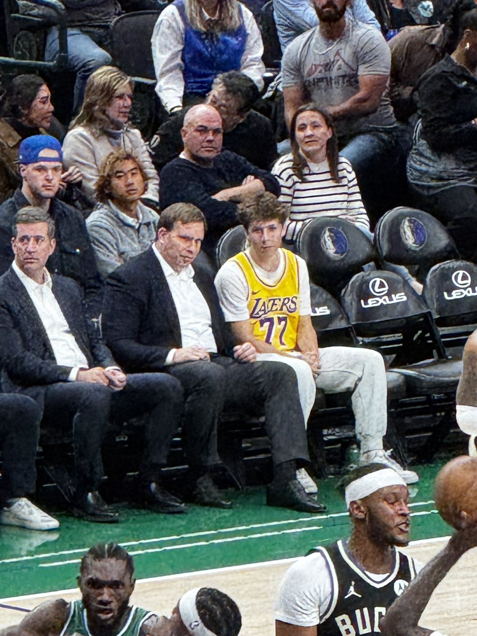 Болельщик в майке «Лейкерс» Дончича пообщался с владельцем «Мэверикс» во время матча