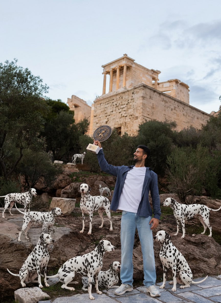 Джокович о фотосессии в Афинах: «Не смог отпраздновать 101-й титул без далматинцев 😆»