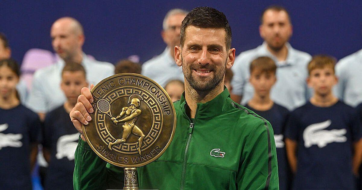Новак Джокович сфотографировался с трофеем турнира в Афинах на фоне Акрополя. В субботу серб обыграл Лоренцо Музетти (4:6, 6:3, 7:5) и взял 101-й титул в карьере.