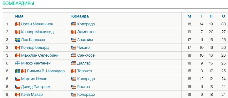 Он единолично возглавил гонку ассистентов лиги, обогнав форварда Нэтана Маккиннона из «Колорадо» (19 ассистов в 18 играх).