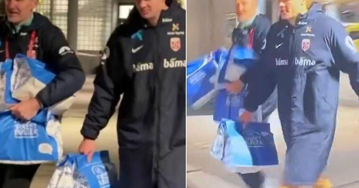 После матча камеры засняли, как Холанд в экипировке сборной нес пакеты с бургерами, которые забрал у курьера, в раздевалку. Всего команда получила около 70 бургеров.