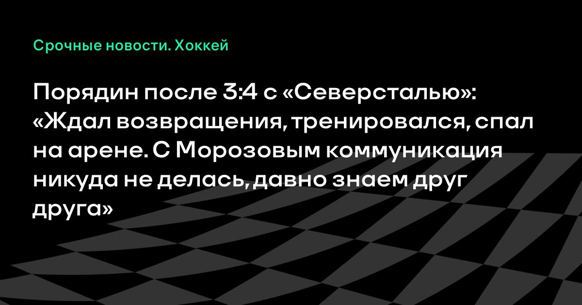 Порядин после 3:4 с «Северсталью»: «Ждал возвращения, тренировался, спал на арене. С Морозовым коммуникация никуда не делась, давно знаем друг друга»
