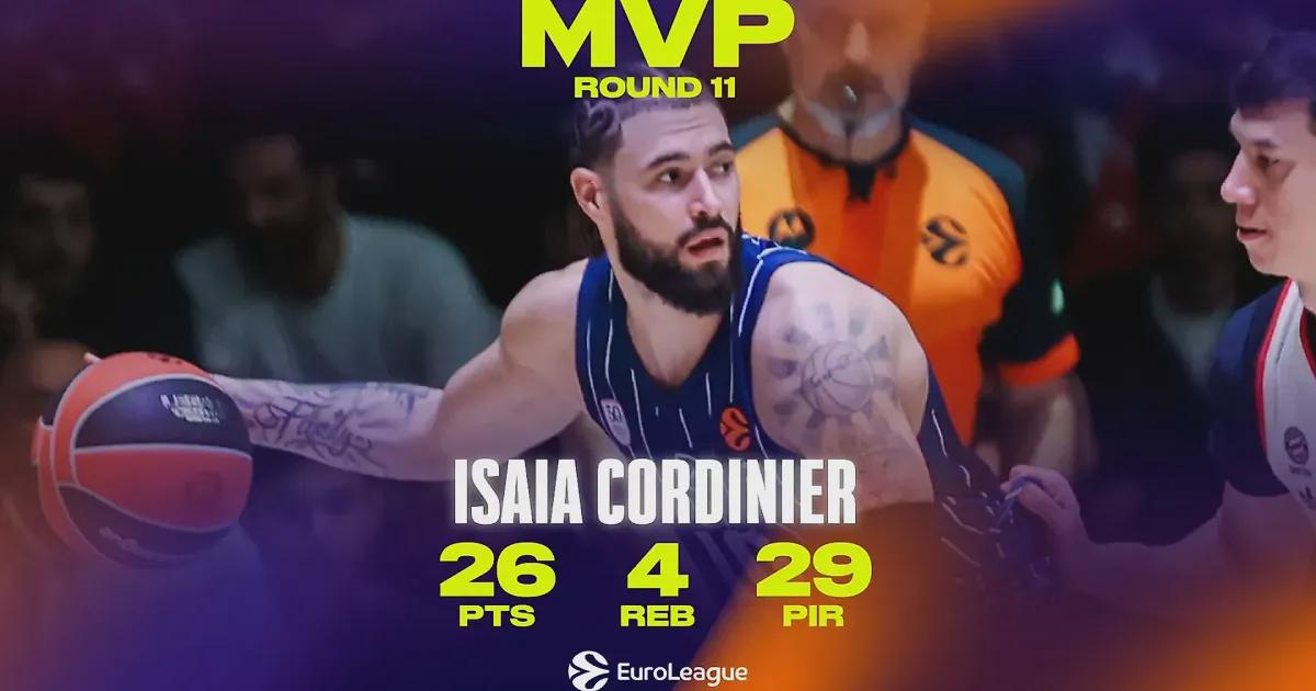 Исайя Кординье стал MVP 11-го тура Евролиги