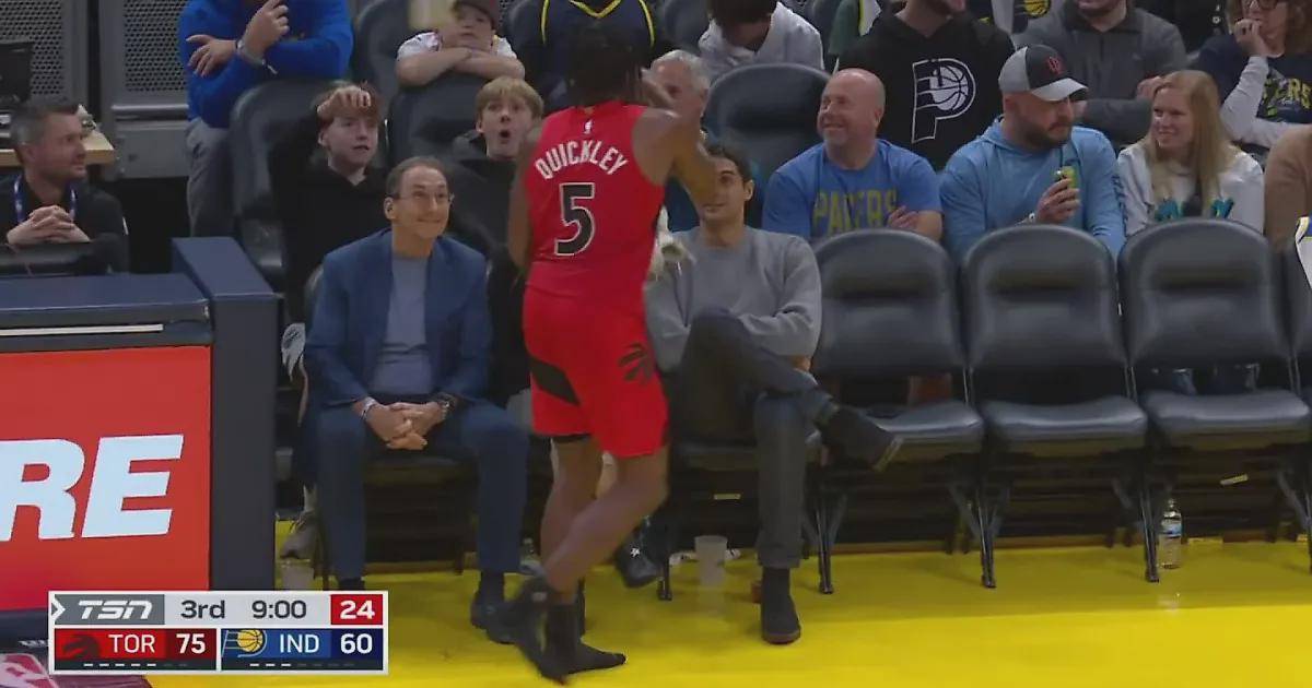 В третьей четверти матча против «Индианы» у защитника «Торонто» Иммануэла Куикли возникли проблемы с кроссовками.