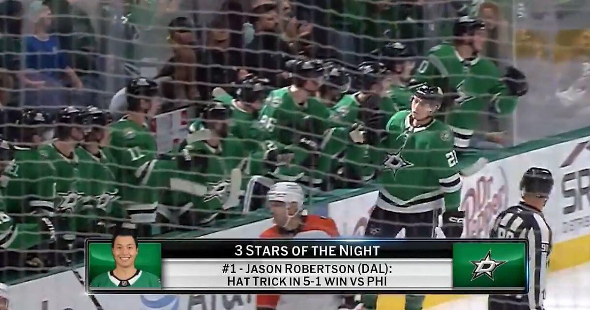 Первая звезда – форвард «Далласа» Джейсон Робертсон с хет-триком в ворота «Филадельфии» (5:1). Американец провел 3-й подряд матч с 3 очками.
