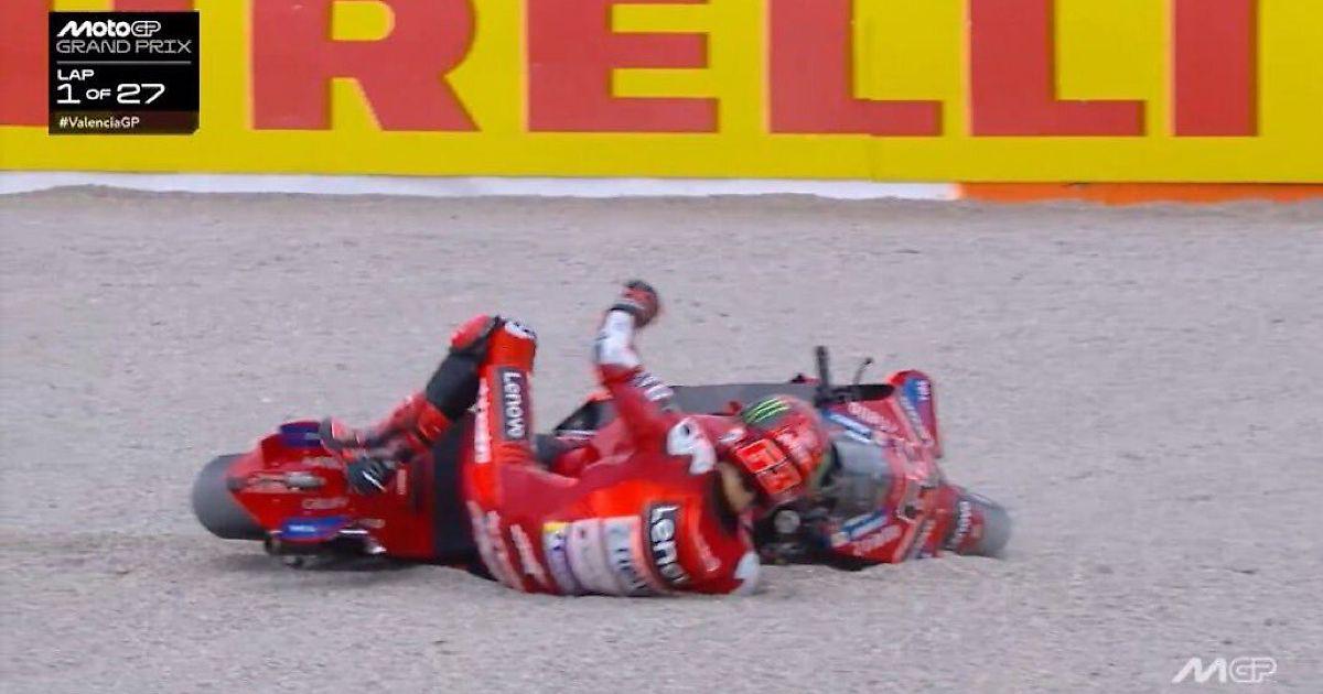 Двукратный чемпион MotoGP Франческо Баньяя завершил сезон сходом – в пилота «Дукати» врезался соперник из «ЛЧР» Жоан Зарко на первом круге. Франко Морбиделли («ВР46») сошел из-за повреждений байка, полученных в столкновении с Алешом Эспаргаро из «Хонды» еще до старта.