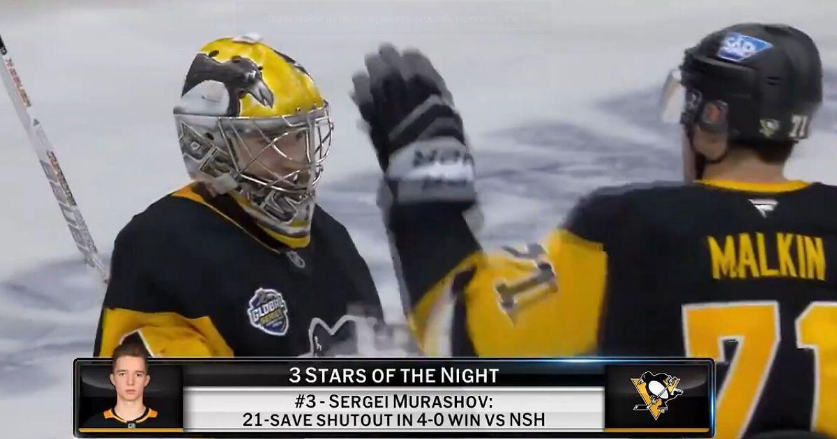 Третья звезда – вратарь «Питтсбурга» Сергей Мурашов, засушивший «Нэшвилл» (4:0) в Стокгольме. Россиянин отразил 21 бросок по своим воротам.