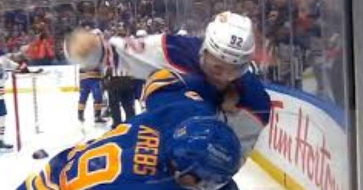Василий Подколзин подрался с Пейтоном Кребсом в матче регулярного чемпионата НХЛ между «Эдмонтоном» и «Баффало» (1:5).