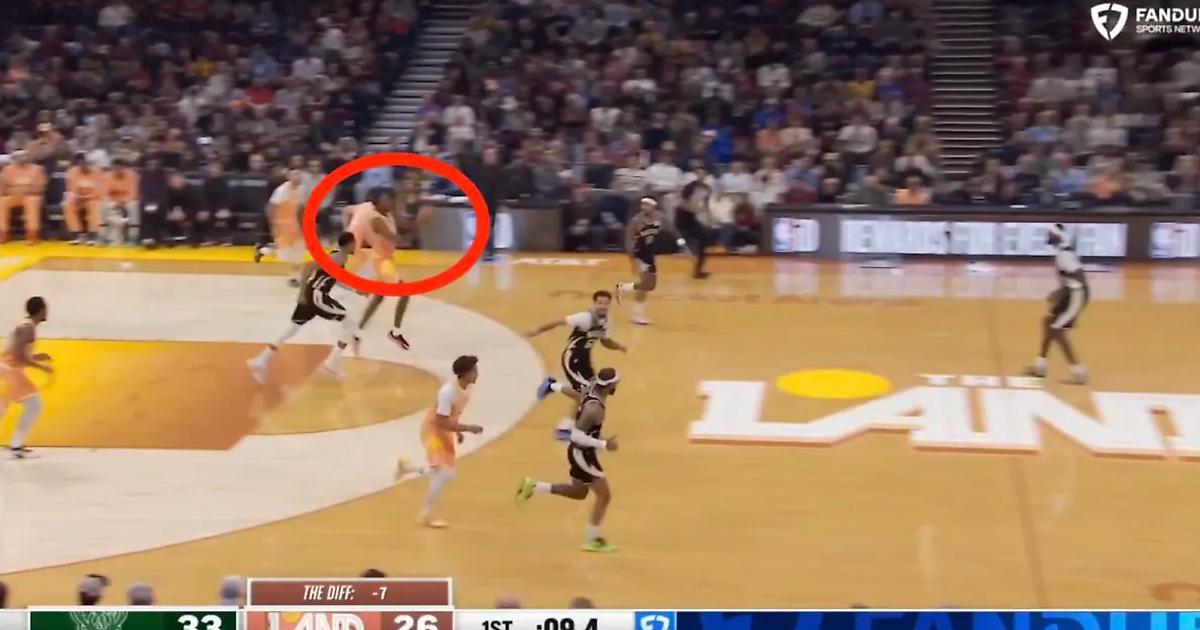 Бигмен «Кавальерс» совершил неточный бросок со своей половины площадки за 9 секунд до конца первой четверти. В итоге у «Бакс» появилась возможность для полноценной атаки.