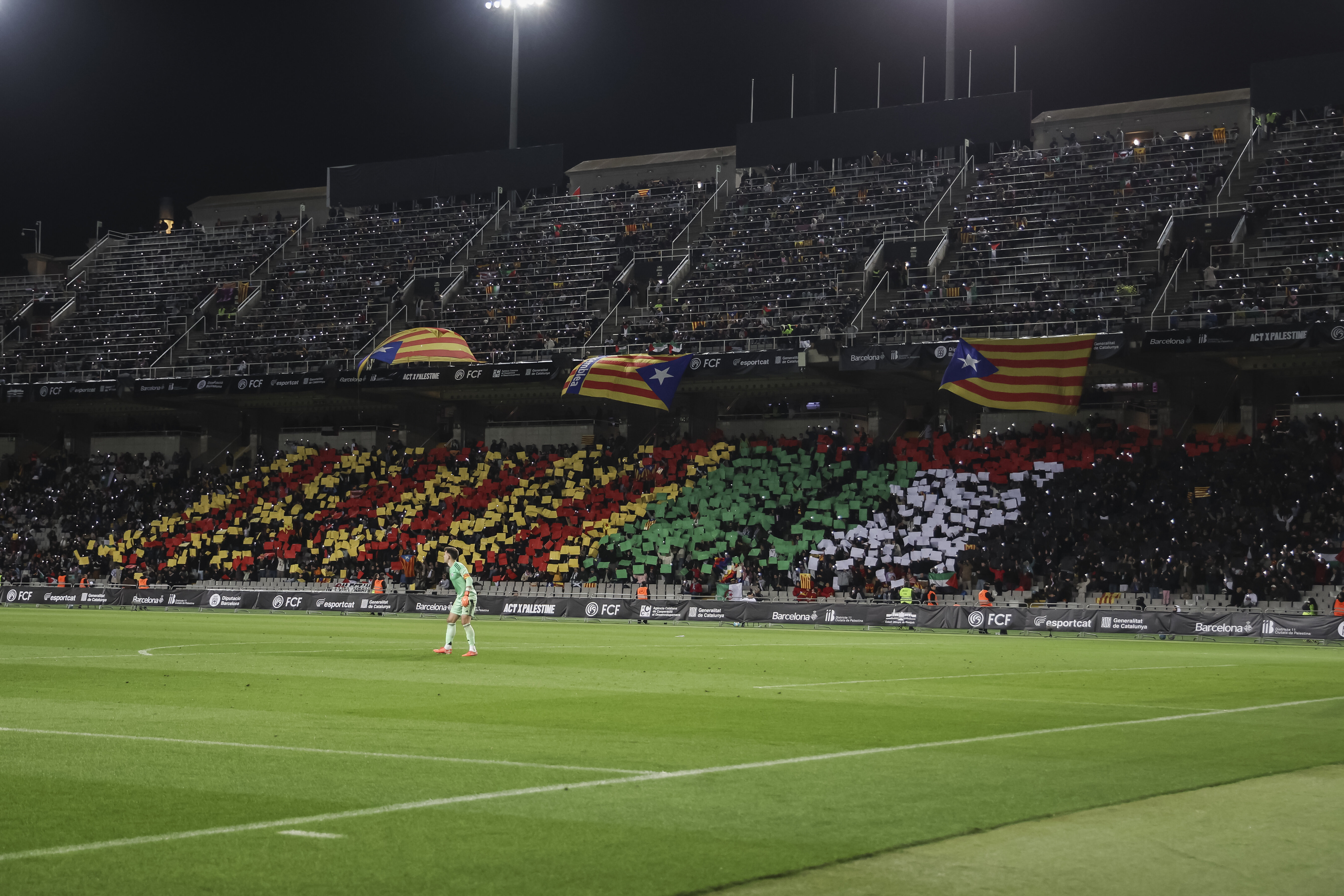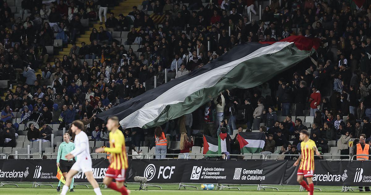 Баннер «За свободу народов – от Каталонских стран до Палестины» вывесили фанаты на товарищеской игре сборных в Барселоне. Пришло больше 30 000 зрителей