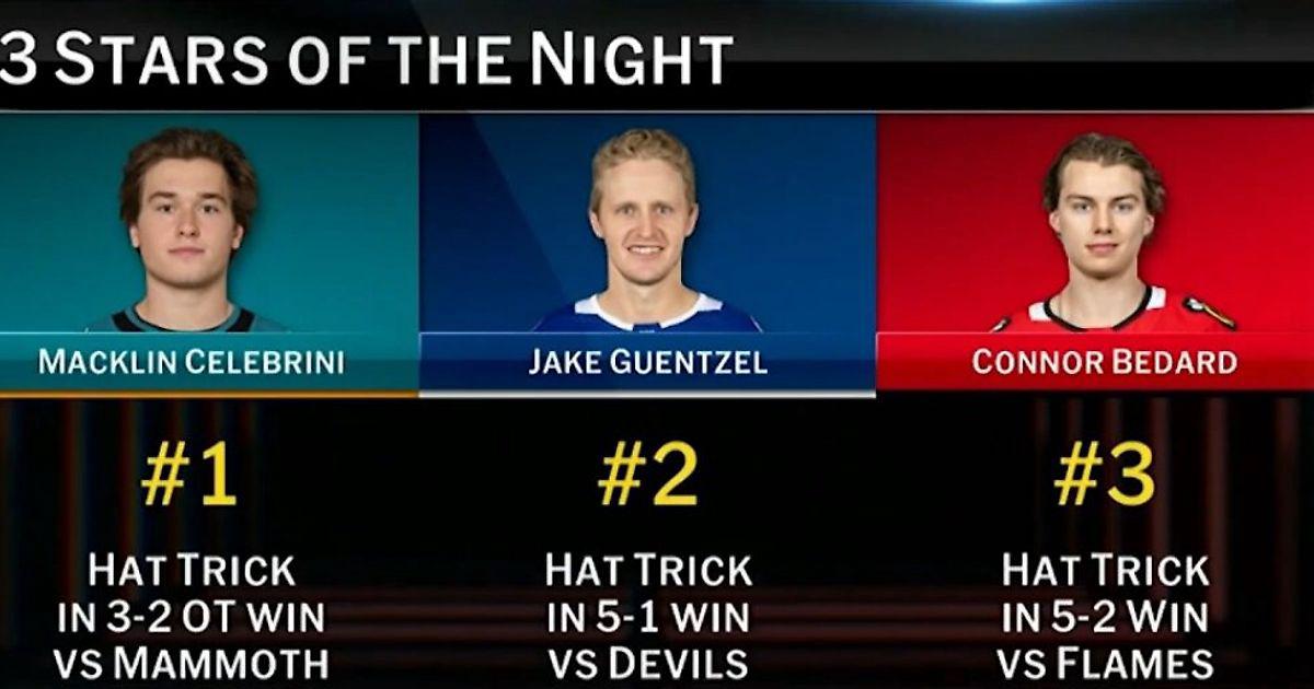 Селебрини, Генцел и Бедард – звезды дня в НХЛ. Все 3 форварда сделали по хет-трику