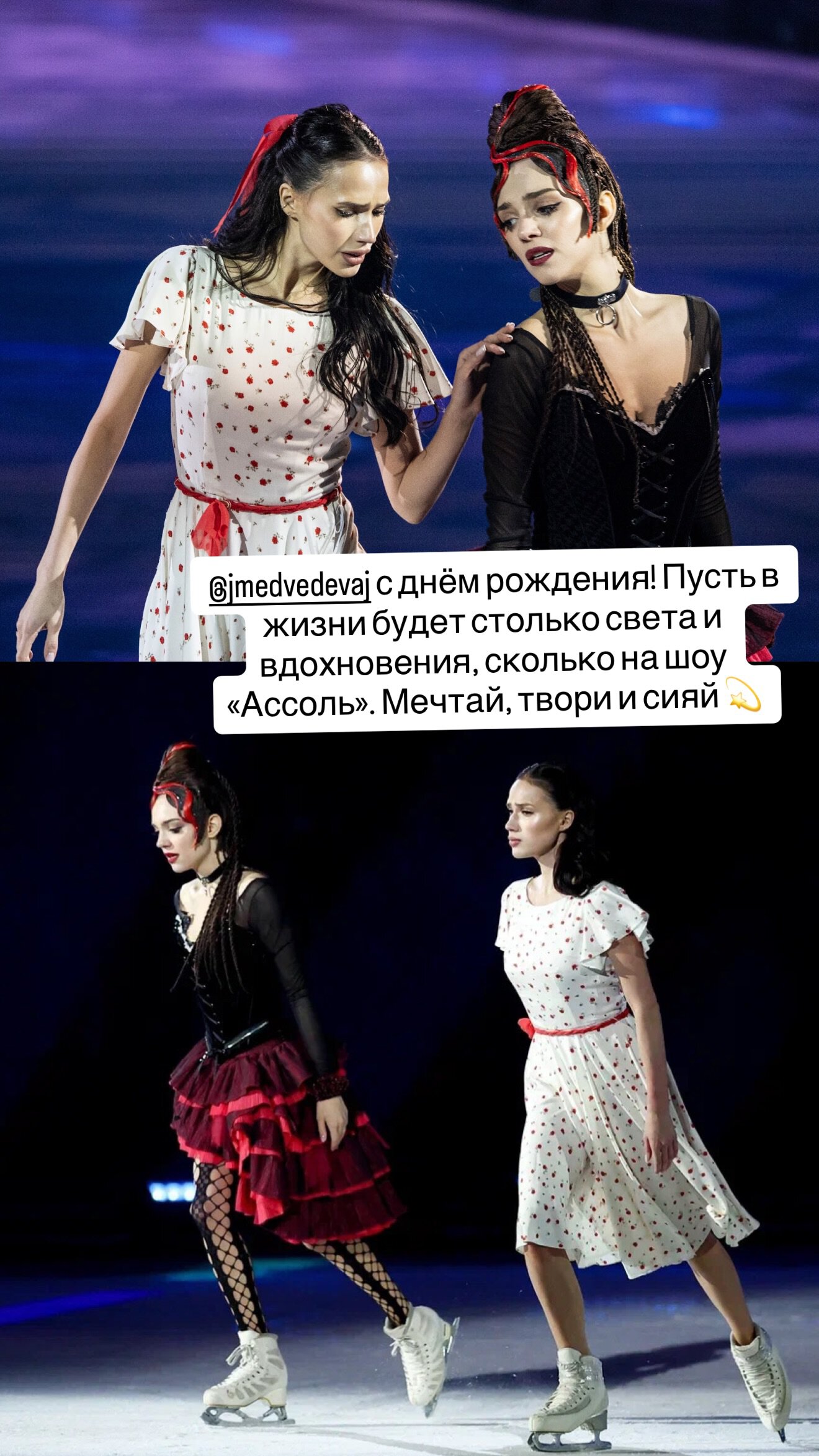 «Пусть в жизни будет столько света и вдохновения, сколько на шоу «Ассоль». Мечтай, твори и сияй». Загитова поздравила Медведеву с днем рождения