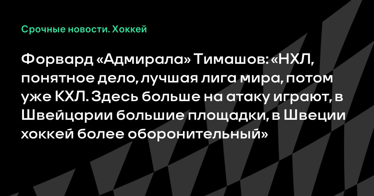 Форвард «Адмирала» Тимашов: «НХЛ, понятное дело, лучшая лига мира, потом уже КХЛ. Здесь больше на атаку играют, в Швейцарии большие площадки, в Швеции хоккей более оборонительный»