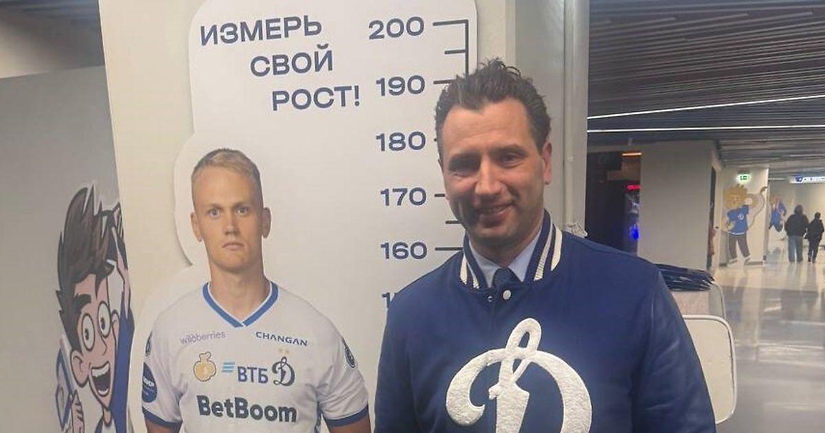 Член совета директоров хоккейного «Динамо» Роман Ротенберг сфотографировался на фоне ростомера с изображением футболиста Константина Тюкавина.