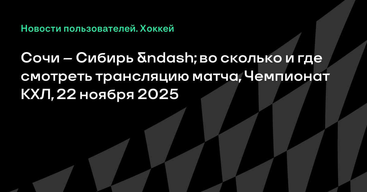 Сочи – Сибирь – во сколько и где смотреть трансляцию матча, Чемпионат КХЛ, 22 ноября 2025