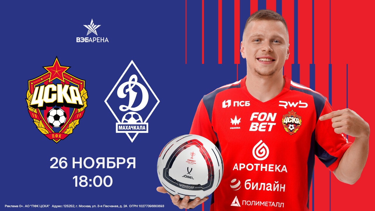ЦСКА сыграет с махачкалинским «Динамо». Армейцы, приходите на ответный кубковый матч против махачкалинцев!