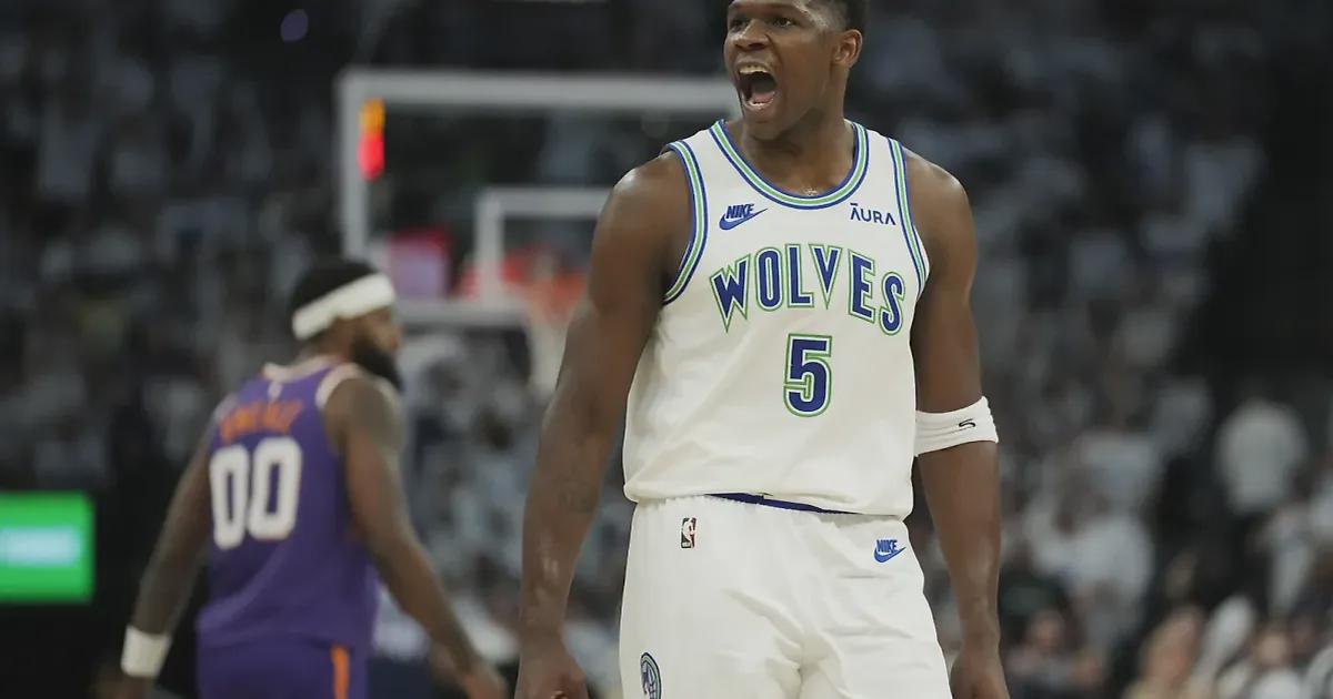 В третьей четверти матча против «Финикса» защитник «Миннесоты» Энтони Эдвардс забросил из-за дуги с сопротивлением форварда «Санс» Диллона Брукса.